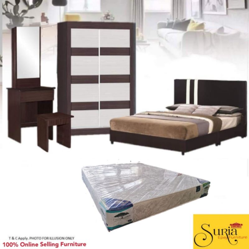Suria Brs224605 4ft Bedroom Set Wardrobe Divan Bed Dressing Table Side Table Mattress Shopee Malaysia